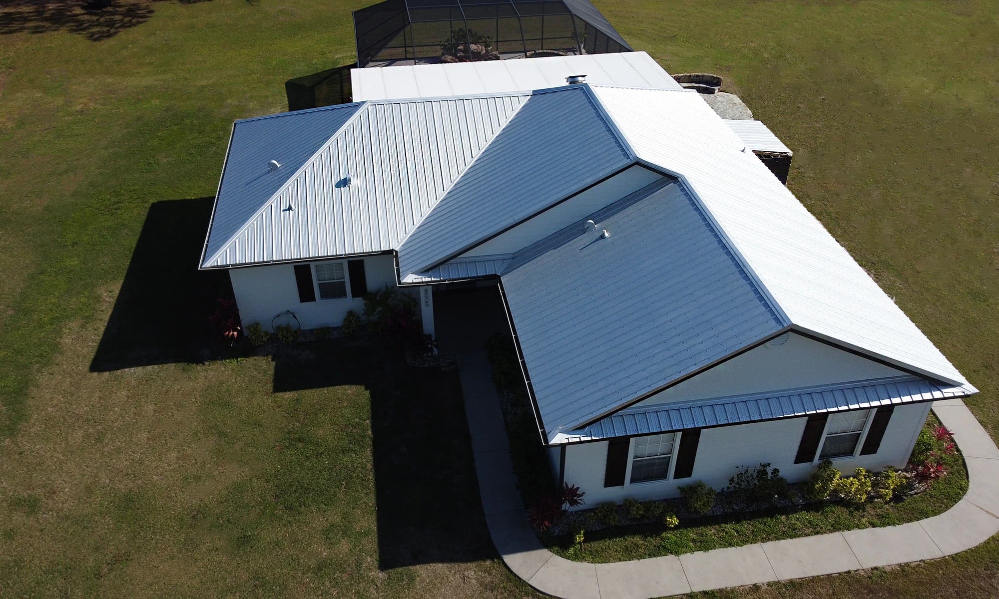 SonShine Roofing completed this metal roof replacement in Myakka City, FL on a new construction home using 24-gauge standing seam galvalume panels manufactured by Union Corrugating Company. The sleek, high-performance design provides lasting protection and a clean, modern look perfectly suited for rural Florida homes. To improve airflow and reduce heat buildup, we also installed a 48-watt solar-powered attic vent from Kennedy Skylights & Solar Ventilation, helping keep the garage cooler and more energy efficient year-round.